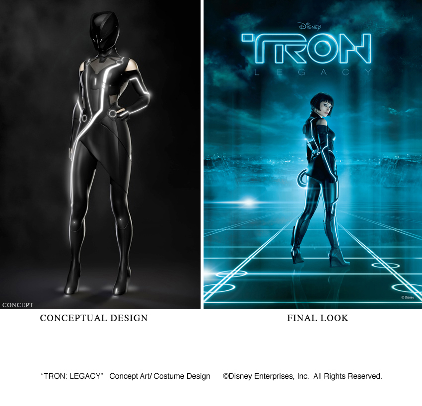 Pero vamos paso por paso, que “Tron: Legacy” tiene mucha tela de donde cortar aun sin que haya llegado a la pantalla grande. Y hablando de telas, vamos al vestuario. Esta es la primera ocasión en la historia del cine, que se utiliza de manera extendida vestuarios auto-iluminados. A mi definitivamente me impresionaron los trajes. Ademas de que los pude ver de cerca. Pues les cuento que el presupuesto inicial en este apartado fue de $13 millones de dólares (no se hasta donde se haya extendido, pero lo averiguaremos). Tan solo un traje hecho a la medida para los corredores costó 60 mil dólares. Otro dato súper interesante es que en el área del vestuario, la magia hispana estuvo involucrada, representada orgullosamente por Carlos Rosario, un afamado y talentoso diseñador con una amplia experiencia en el departamento de vestuario en producciones cinematográficas, participando en películas como “Sleepy Hollow,” “Planet of the Apes,” “Chicago” and “A series of Unfortunate Events”, por mencionar algunas.