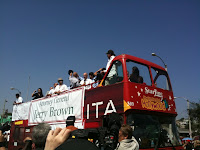 Previo al desfile que inició en la Avenida Cesar Chávez y reunió a miles de personas, tuve la oportunidad de intercambiar unas cuantas palabras con el actor Danny Trejo, el mero mero de la película Machete. Súper sencillo, me comentó que esta muy contento y satisfecho por el éxito obtenido en esta película dirigida por Robert Rodríguez, cuya idea original surgió a raíz de un trailer falso que aparecía entre las cintas de “Planet Terror” y “Death Proof”. Danny Trejo nació en Echo Park, Los Angeles. Estadounidense de ascendencia mexicana. Orgulloso de sus raíces, formó parte del desfile.