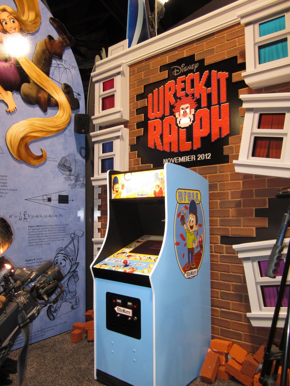 En una de las salas de Exhibición del Centro de Convenciones de Anaheim, CA, tenían el Video Juego Tipo Arcade “Wreck-It Ralph”. Obviamente que había que explorar. De eso se trata, ¿no? La película estrena en Noviembre del 2012.