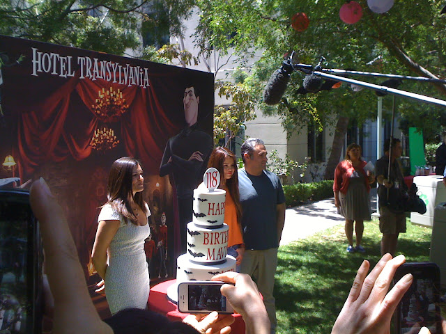 Al final del avance de la cinta, en los jardines de los estudios, Selena Gomez partió el pastel para celebrar su cumpleaños 118, bueno el de Mavis el personaje de ficción que interpreta en esta película familiar que estrena en los cines el 28 de Septiembre.